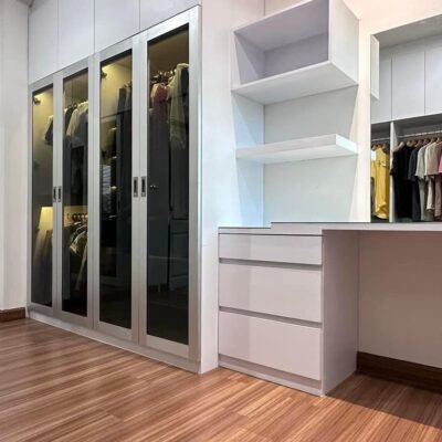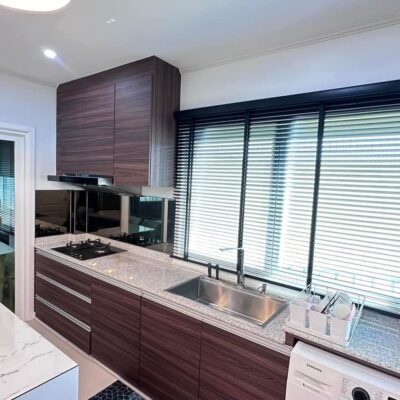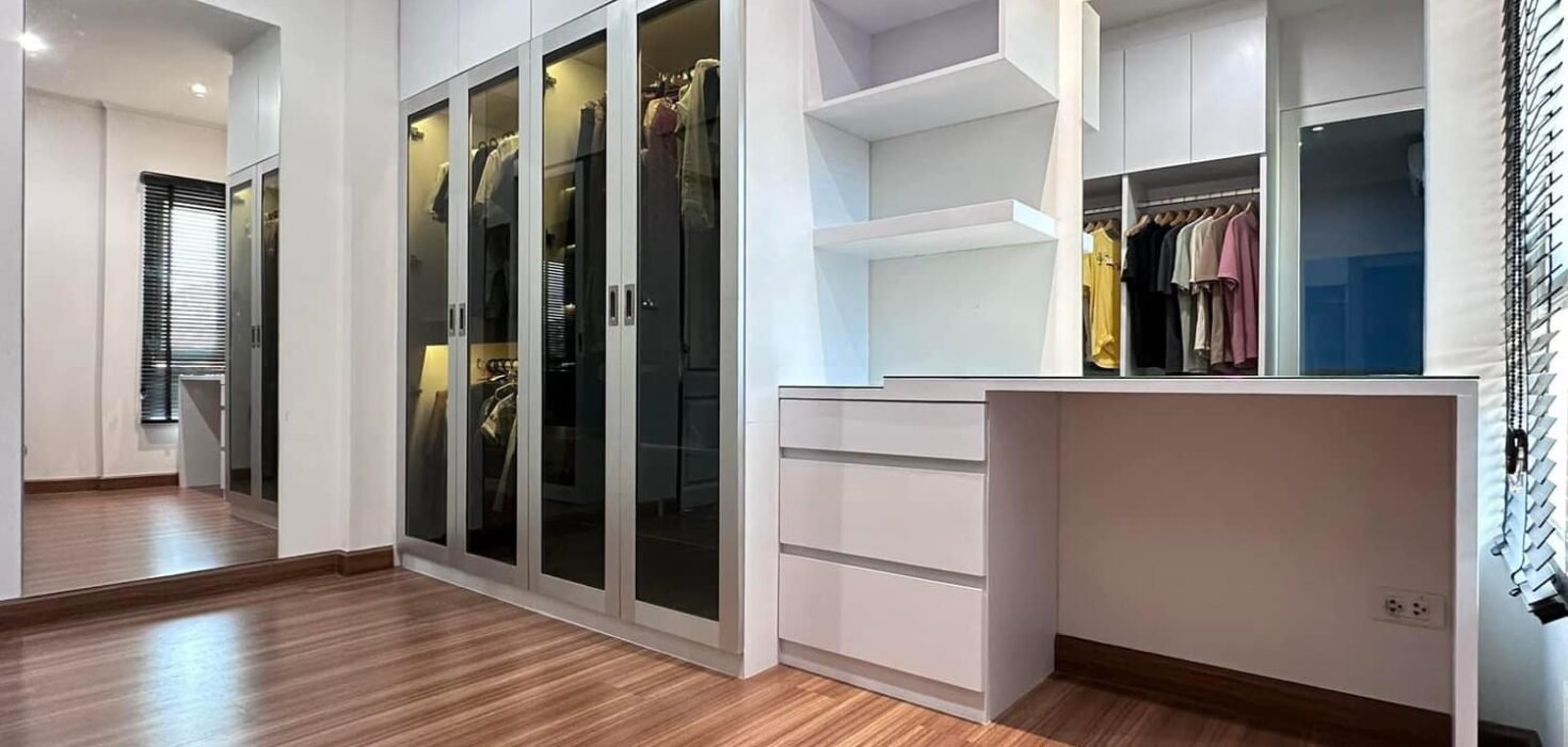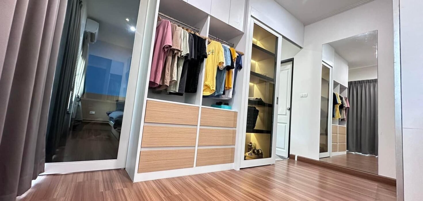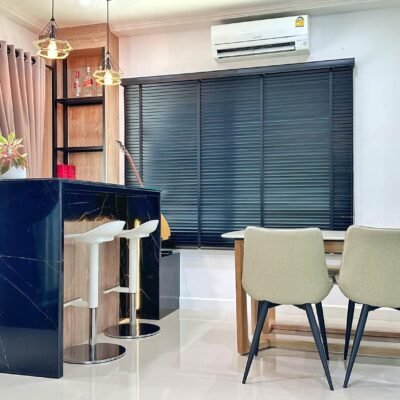 • ต่อเติมห้องใต้บันไดเป็นห้องเก็บของ,ห้องโถ่ง,เค้าเตอร์ครัว,บิ้วอิน,ห้องรับแขก