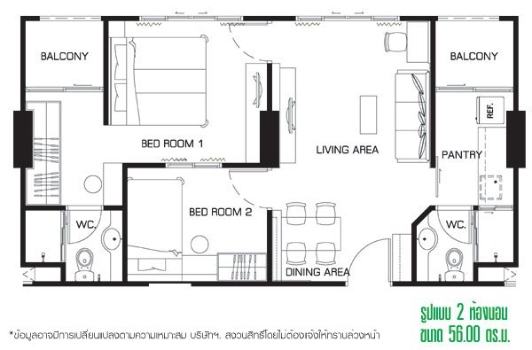 พื้นที่ (ตารางเมตร) :56 ตร.ม.