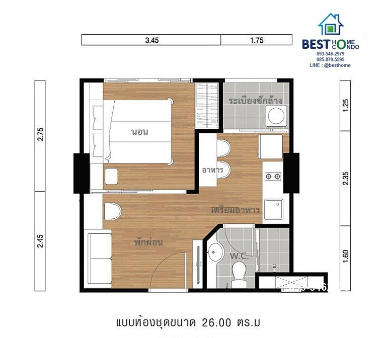 พื้นที่ (ตารางเมตร) :26.12 ตร.ม.