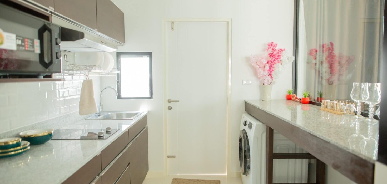 • เคาน์เตอร์ครัว + เตาไฟฟ้า + ที่ดูดควัน