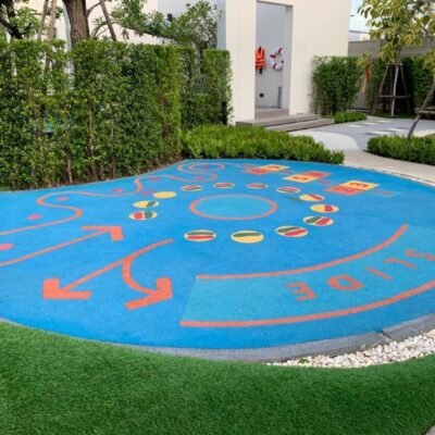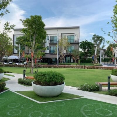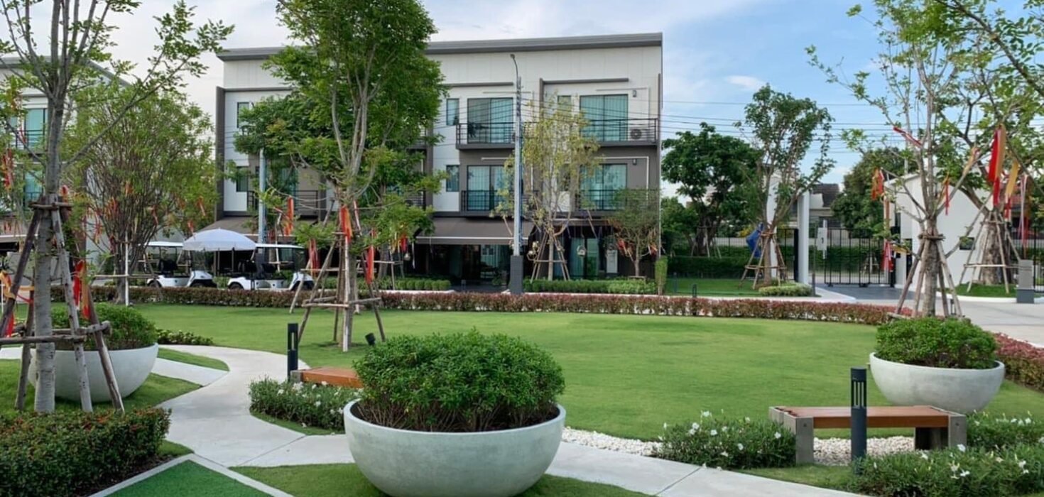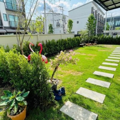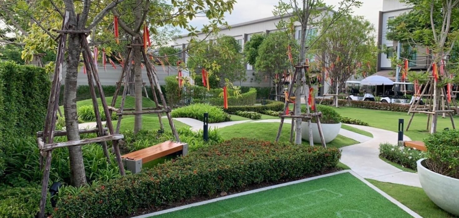 • ปูทางเทัาและหญ้าเทียมสำหรับพื้นที่ข้างบ้านเพื่อเป็นพื้นที่สวนหรือสนาม