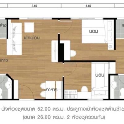 พื้นที่ (ตารางเมตร) :52 ตร.ม.