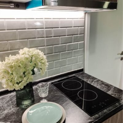 • เคาน์เตอร์ครัว + เตาไฟฟ้า + ที่ดูดควัน