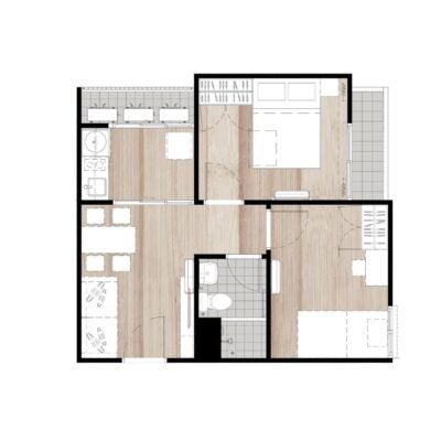 ขนาด 43 ตร.ม. ชั้น 2 ตึก C / 2 ห้องนอน 1 ห้องน้ำ