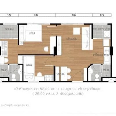 พื้นที่ (ตารางเมตร) :52 ตร.ม.