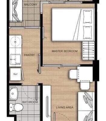 ขนาด 28.19 ตร.ม. ชั้น 8 ตึก C / 1 ห้องนอน 1 ห้องน้ำ