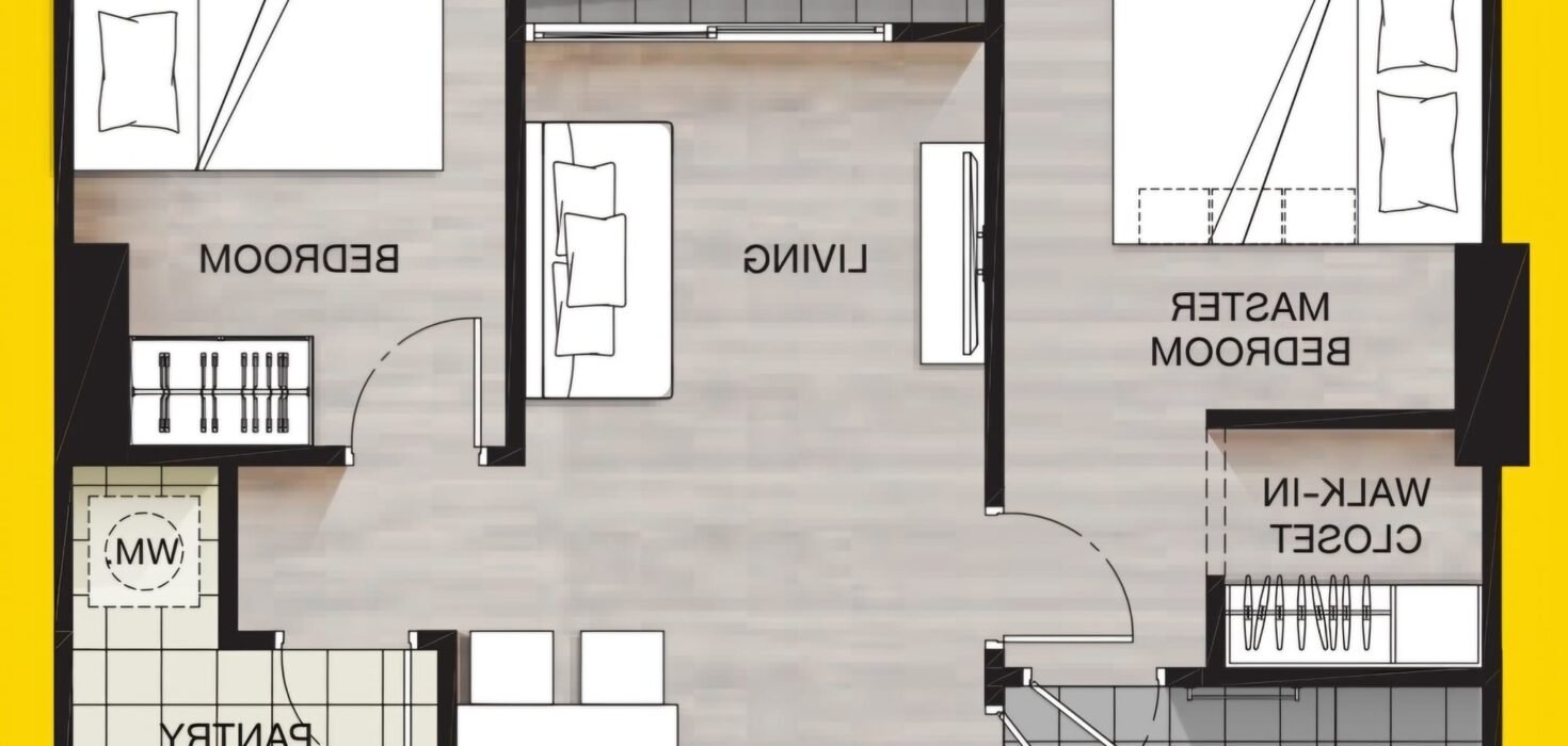 ขนาด 44 ตร.ม. ชั้น 2 / 2 ห้องนอน 1 ห้องน้ำ